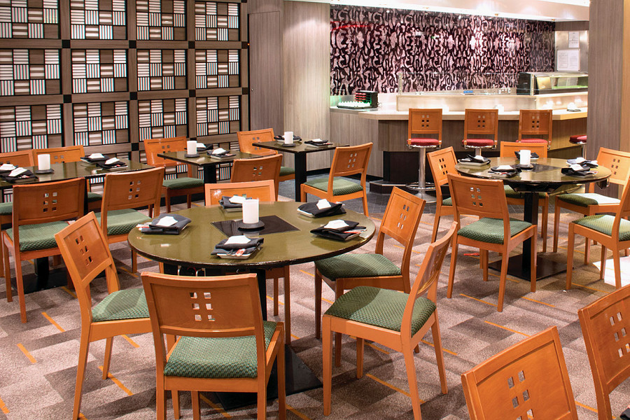 Walk all the way through Garden Cafe to reach the Great Outdoors on the aft of Deck 12. This outdoor buffet features made-to-order omelettes, soups, ethnic specialties, pasta, and more. It's the perfect spot to enjoy your morning coffee.